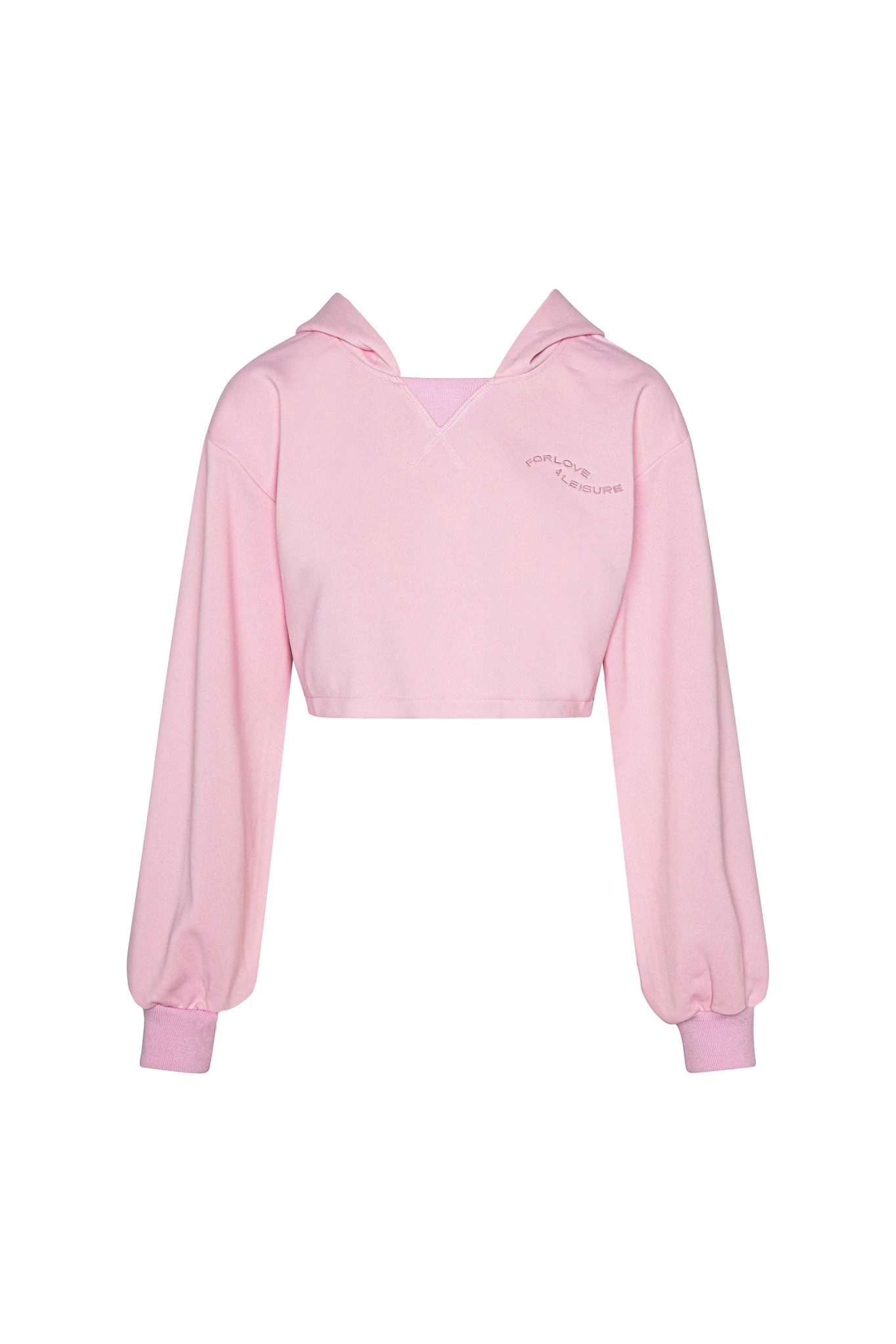 The official uniform of chill: a cozy layer to pull on after workouts or just for hanging out. Features an oversized, cropped silhouette and a raw edge hem.