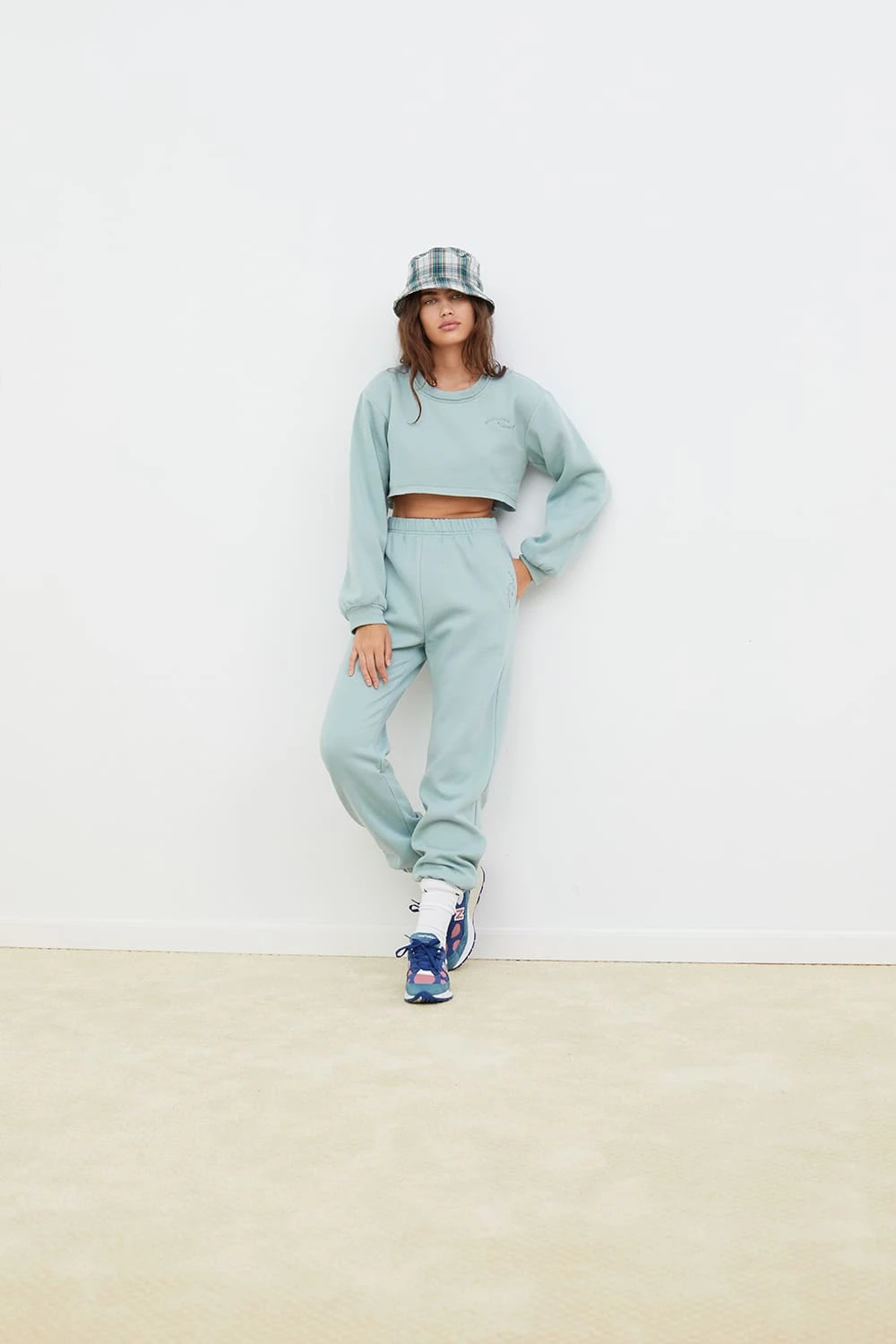 The official uniform of chill: a cozy layer to pull on after workouts or just for hanging out. Features soft-to-the-touch brushed fabric, a cropped silhouette, and feminine blouson sleeves.