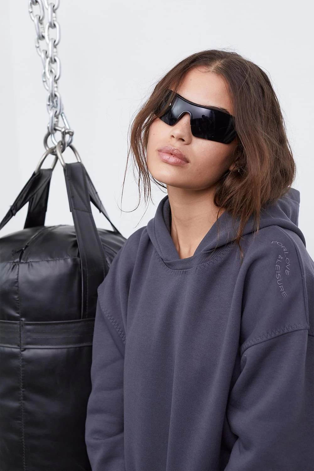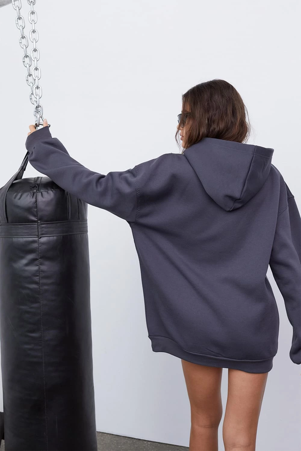Add a layer of comfort with this updated oversized sweatshirt, thoughtfully designed with jersey fabrication for simplicity and ease.