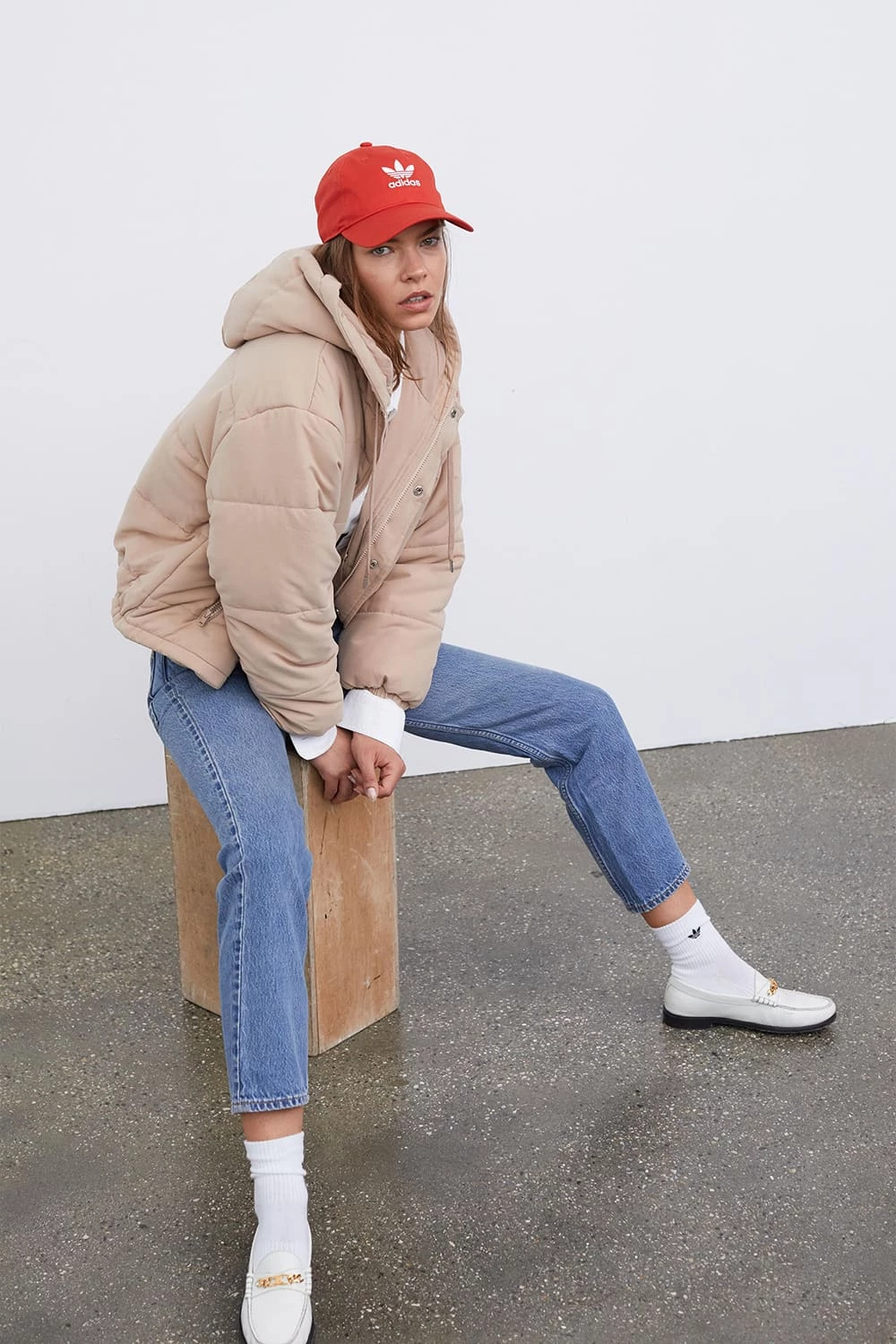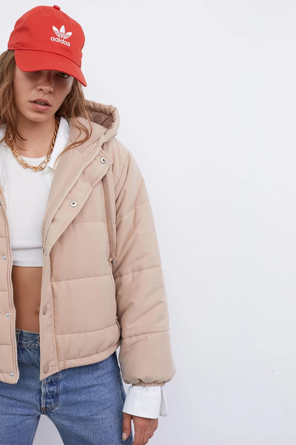 - Slightly cropped puffer hoodie jacket