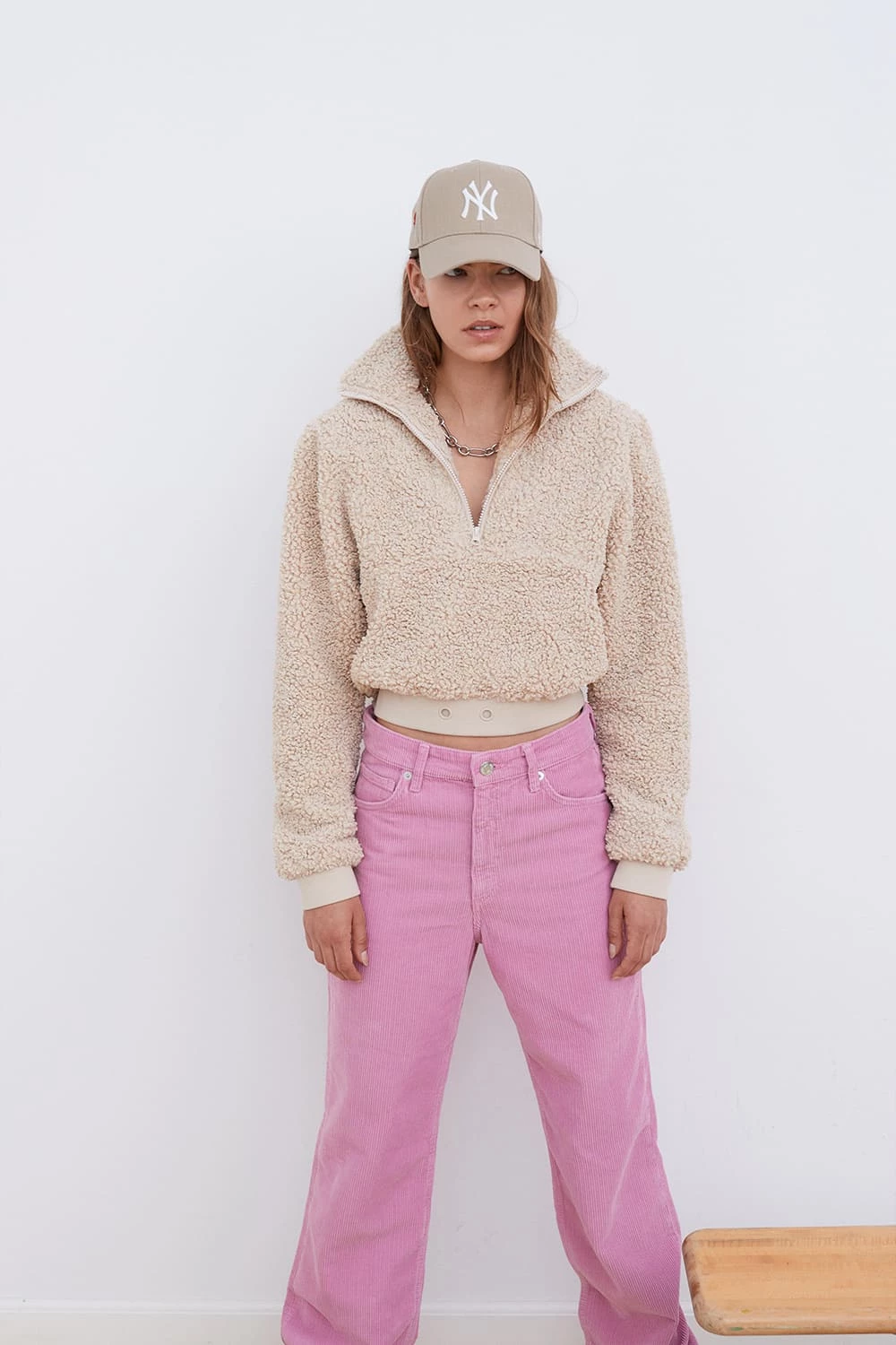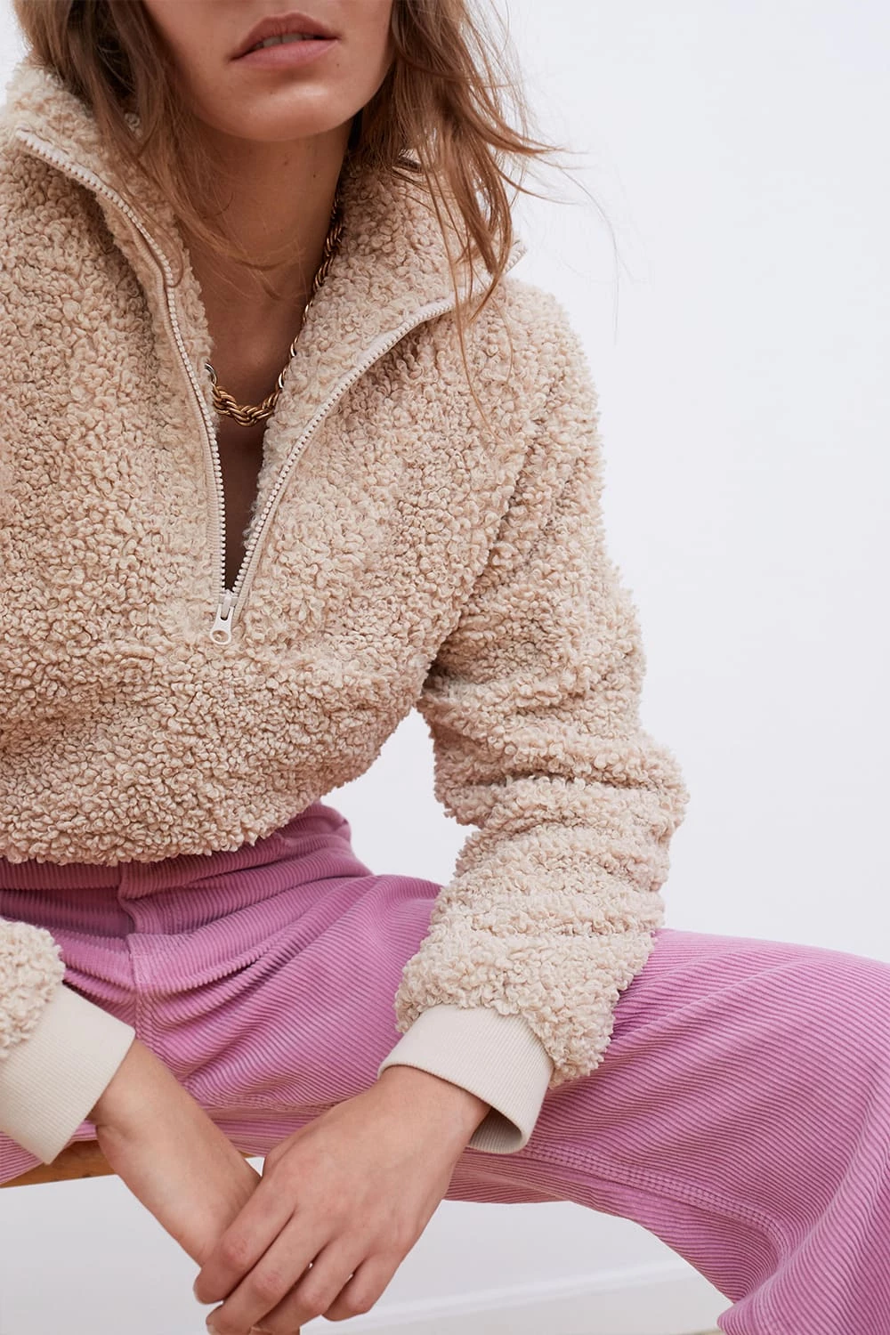 Bundle up in a fluffy pullover that feels as good as it looks. Fully lined and cropped, this style perfectly accents your favorite athleisure looks.