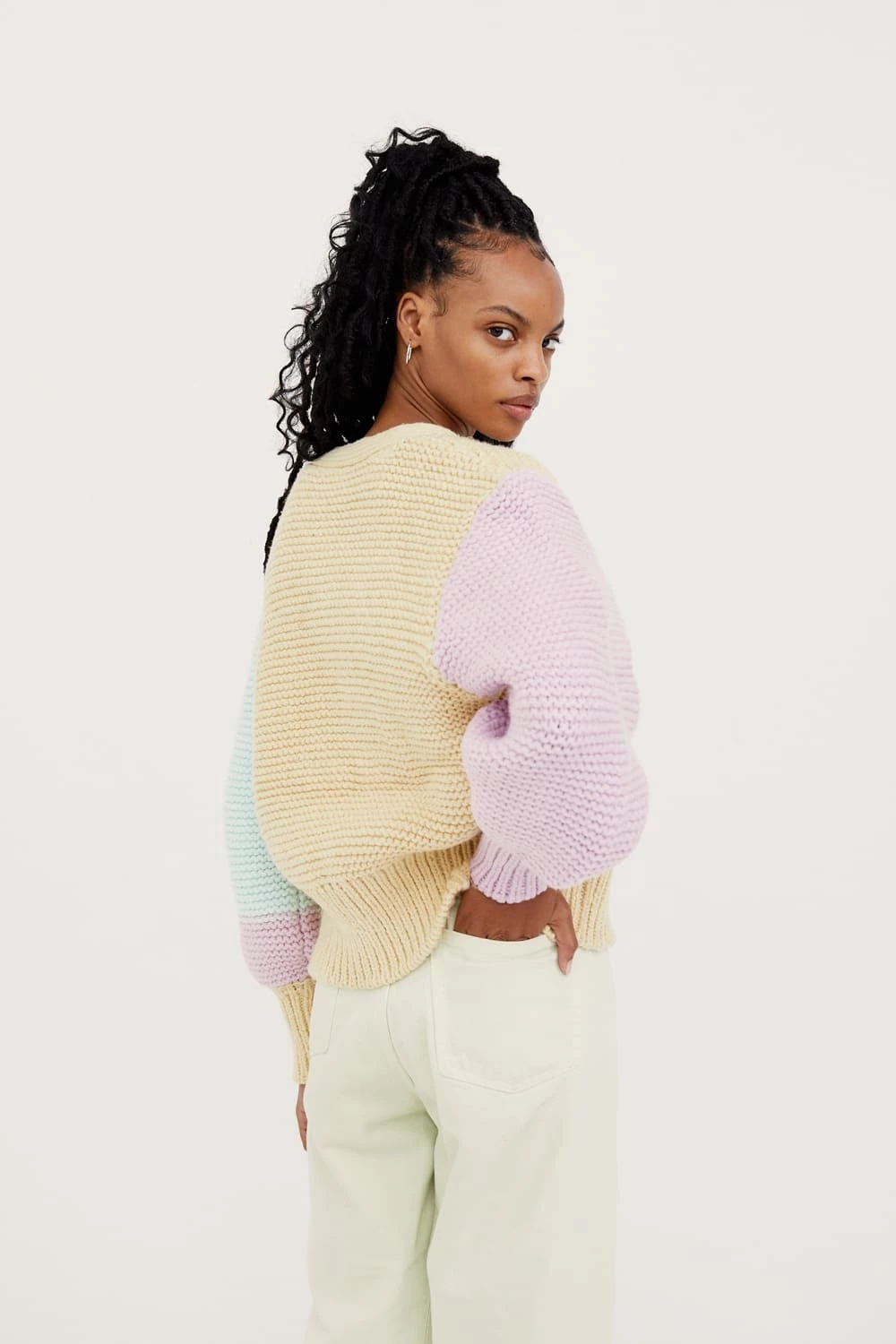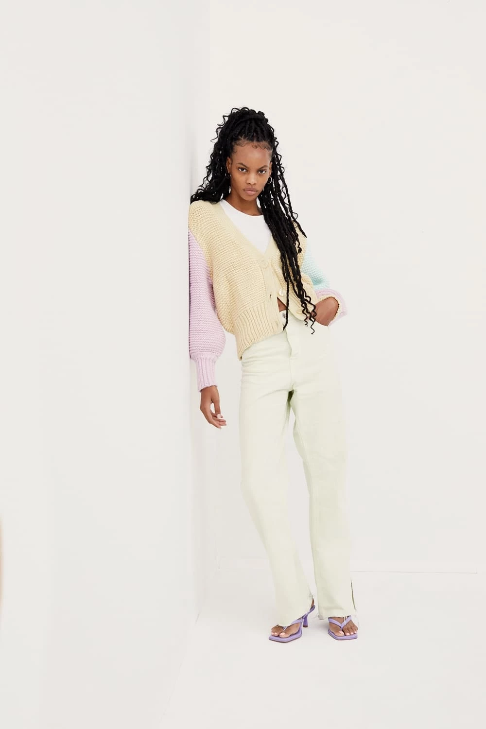 Cool chunky color-block cardigan featuring tonal buttons and a deliciously soft feel.