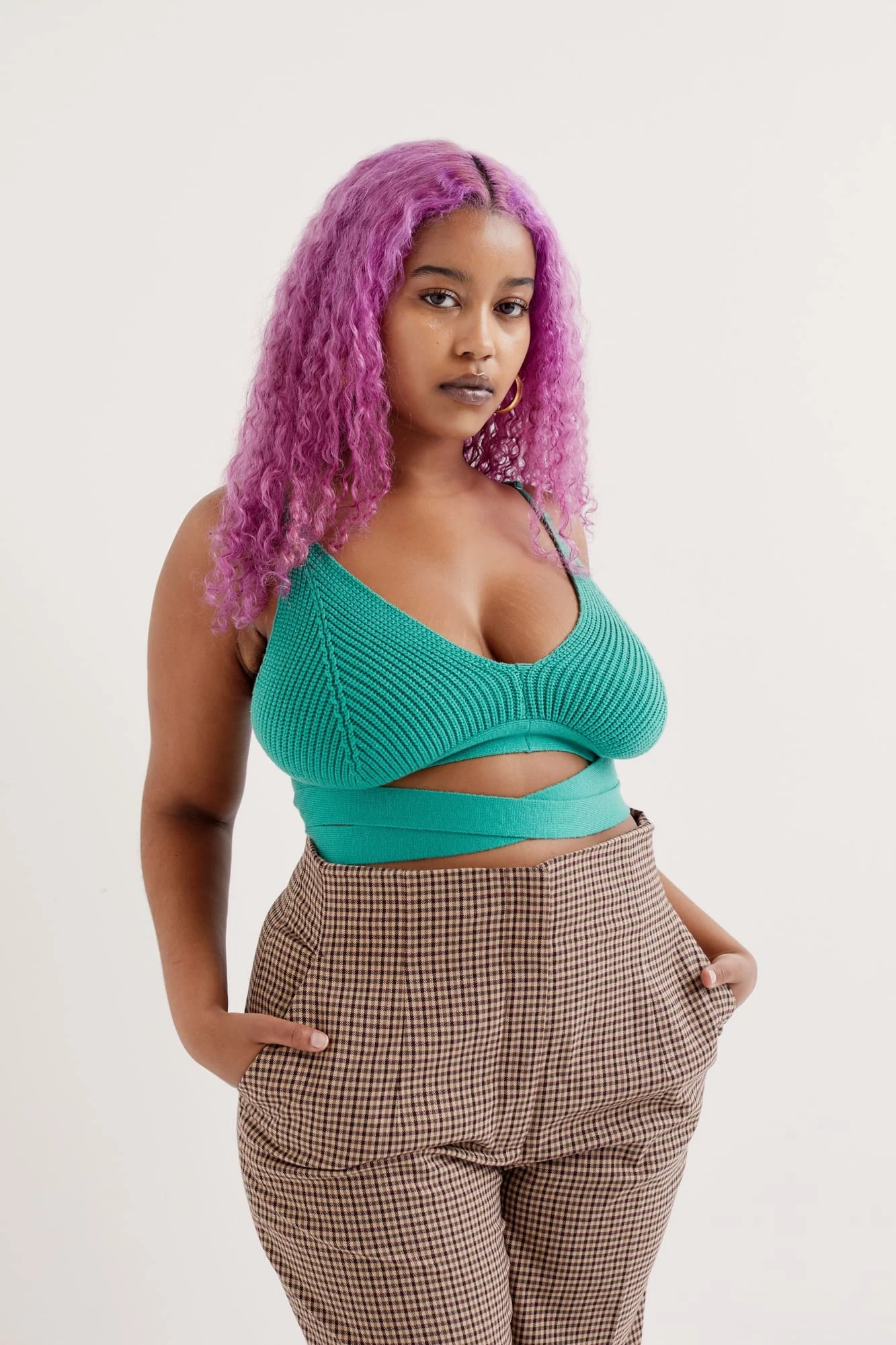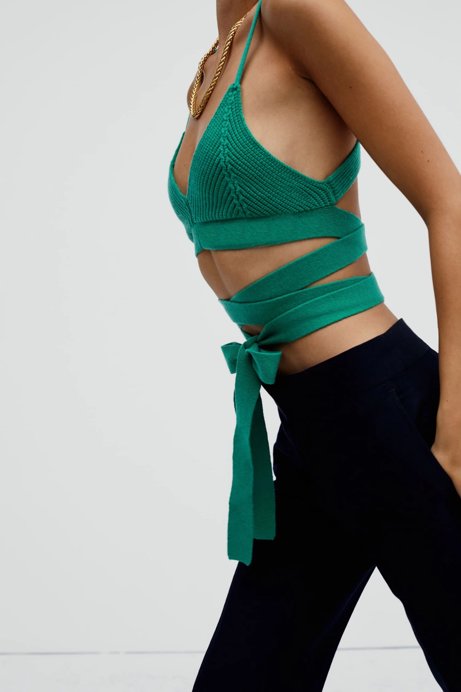 Modern knit cami featuring wrap-around ties and chevron detailing. Deliciously soft feel.