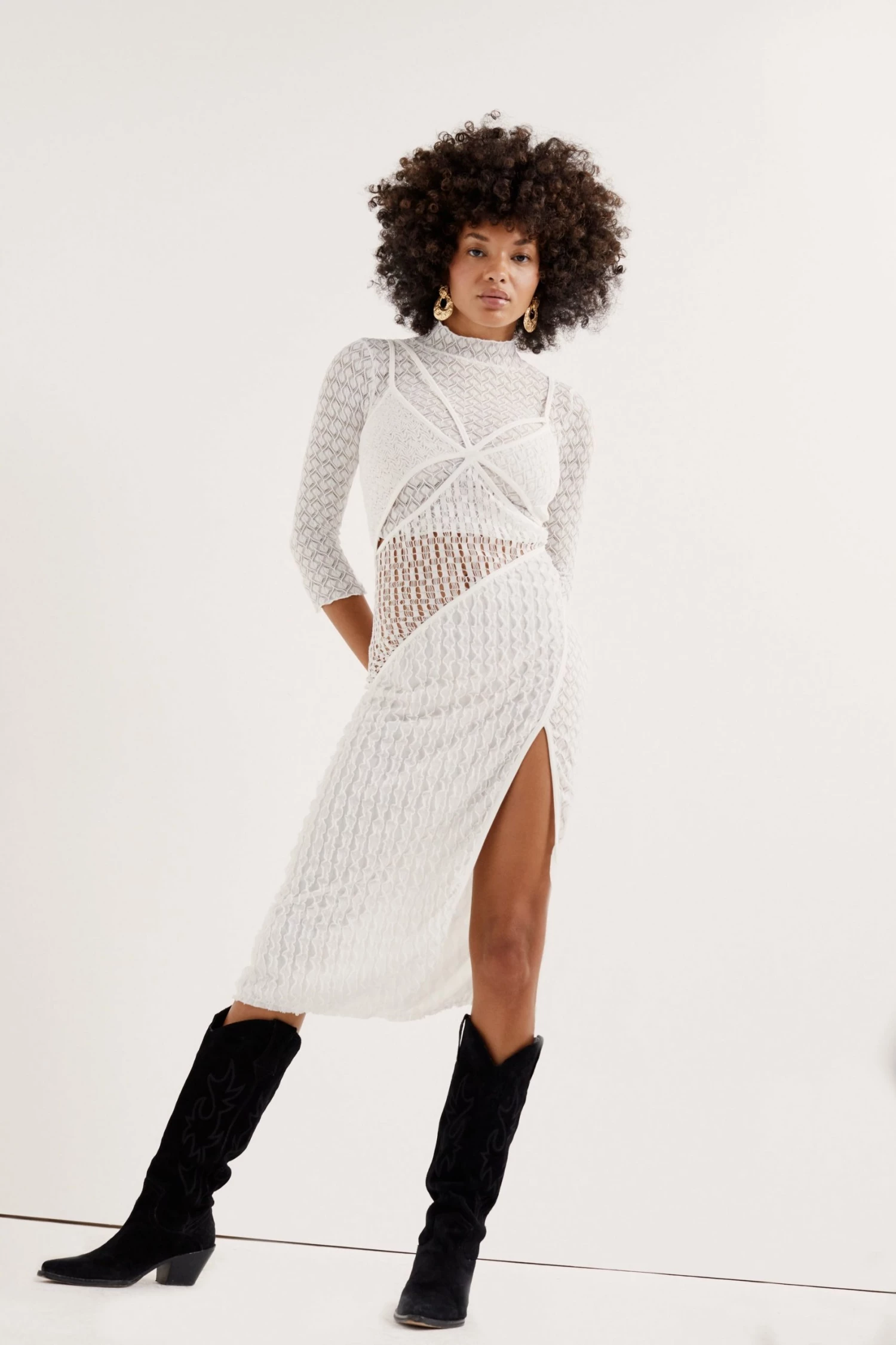 Chic cropped knit turtleneck featuring a flamestitch design and lettuce-edge hems.