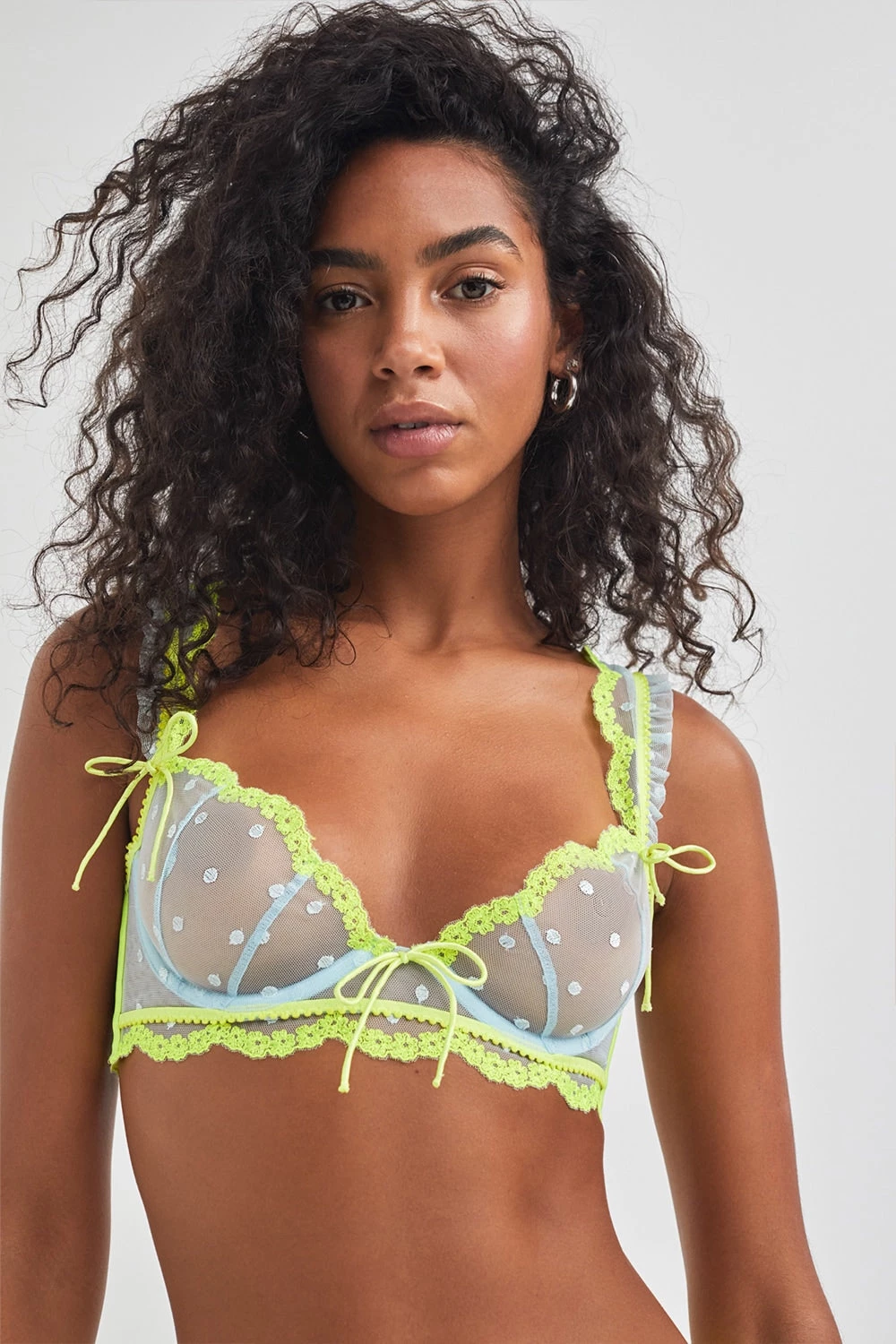 The bold neon hue, delicate lace, and sweet dot pattern have us swooning over this bralette. Complete the look with the Neon Dottie Thong Panty.