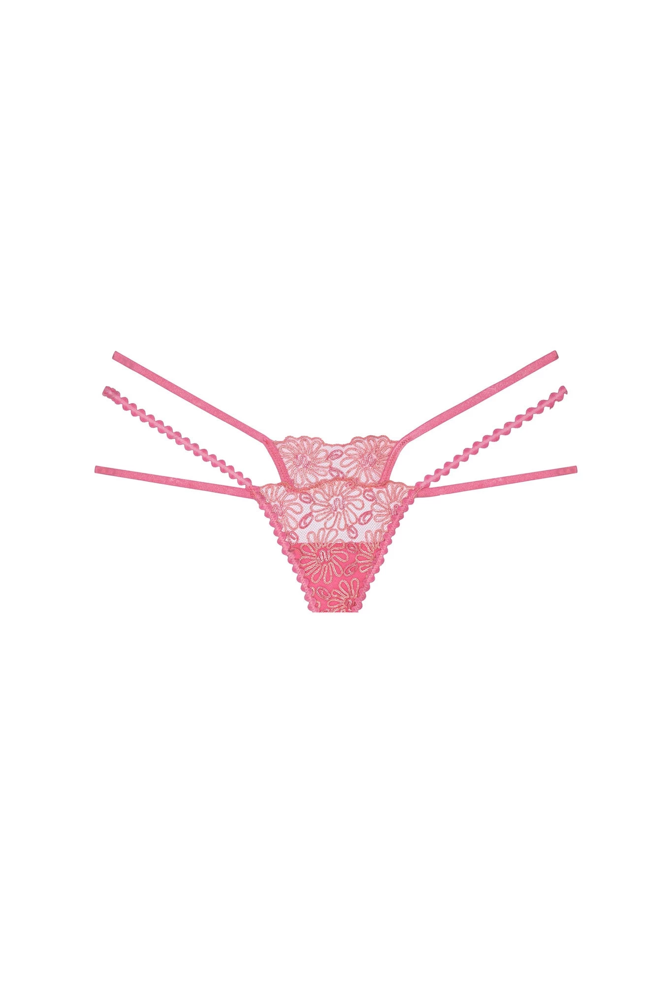 The daintiest pink daisies sit atop the sheer mesh of this strappy style made with playful rickrack details. Style with the matching Gracie Bra for a delightfully intricate look.Â